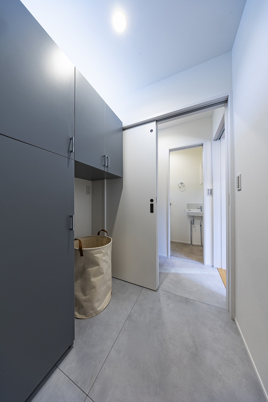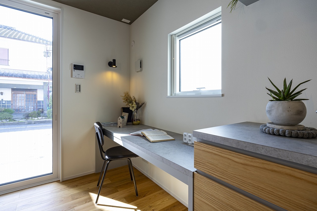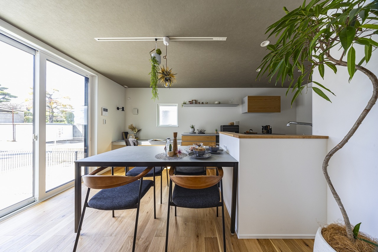 大開口の窓から暖かな光がリビングに差し込み、明るく開放感のある寛ぎの空間に。間接照明が空間を上品に仕上げ、日々の暮らしを豊かにしてくれます。玄関土間とリビングの間にはライフスタイルに応じて仕切りを設置することもでき、玄関をあけた空間を個性的に、多様に活用できます。