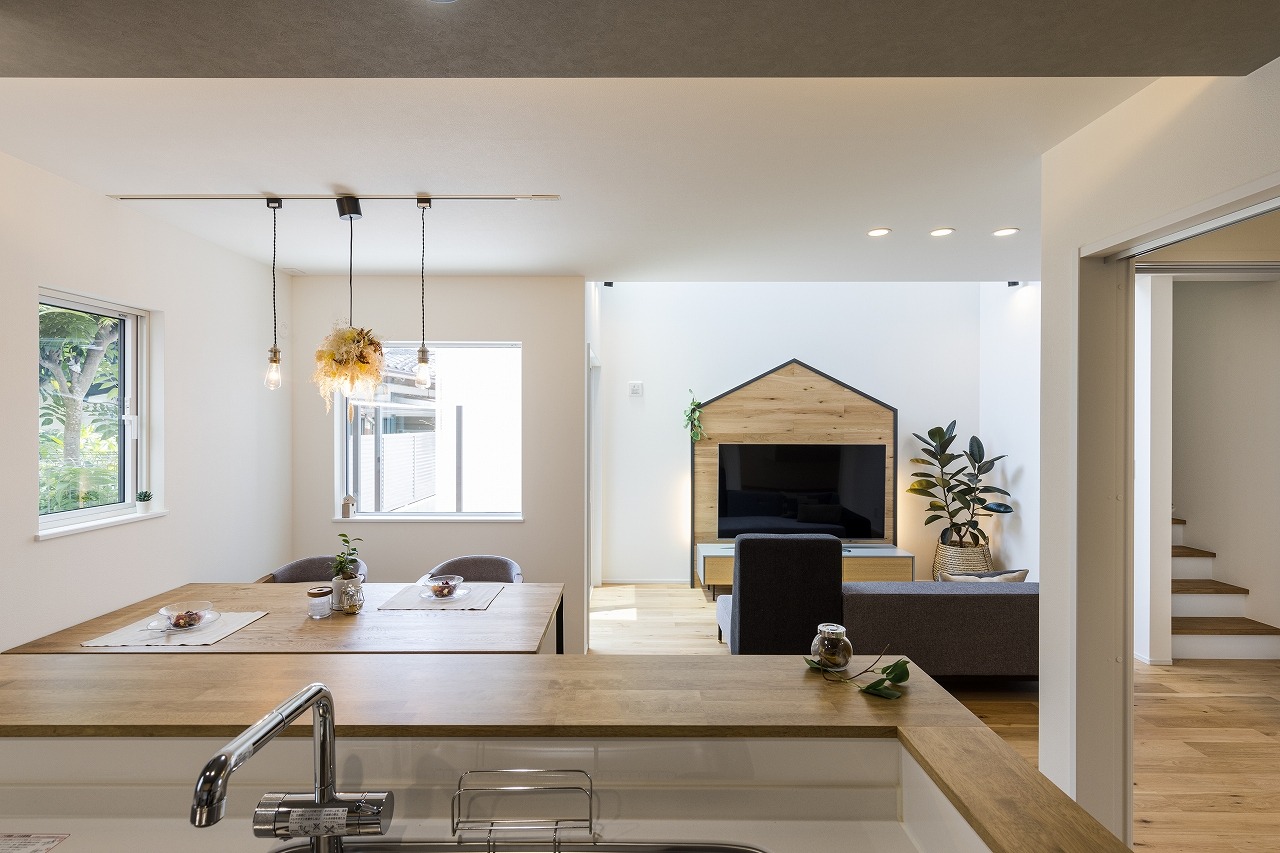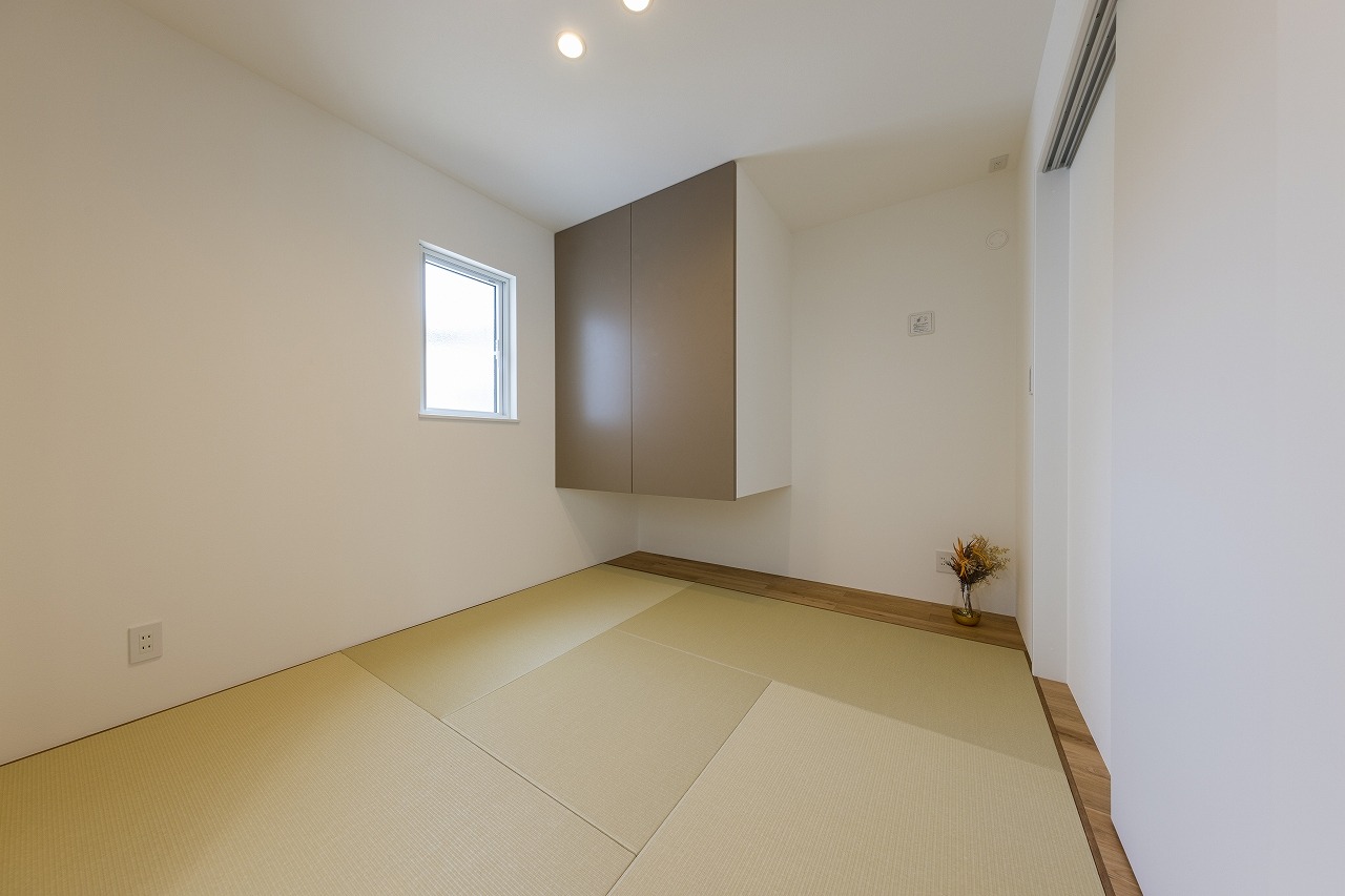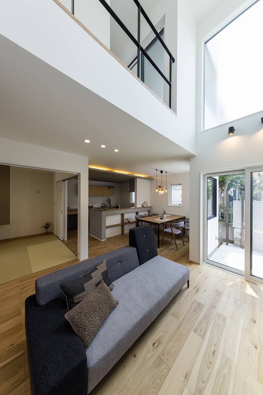 ドアを開けるとそこにあるのは、LDKと和室が繋がり広々とした空間。 繋がりにより開放感ある明るい空間に。 和室は押入れを吊り押入れにし、床として繋がっているため床も広く見える。 繋がりは、広がり。 Connect