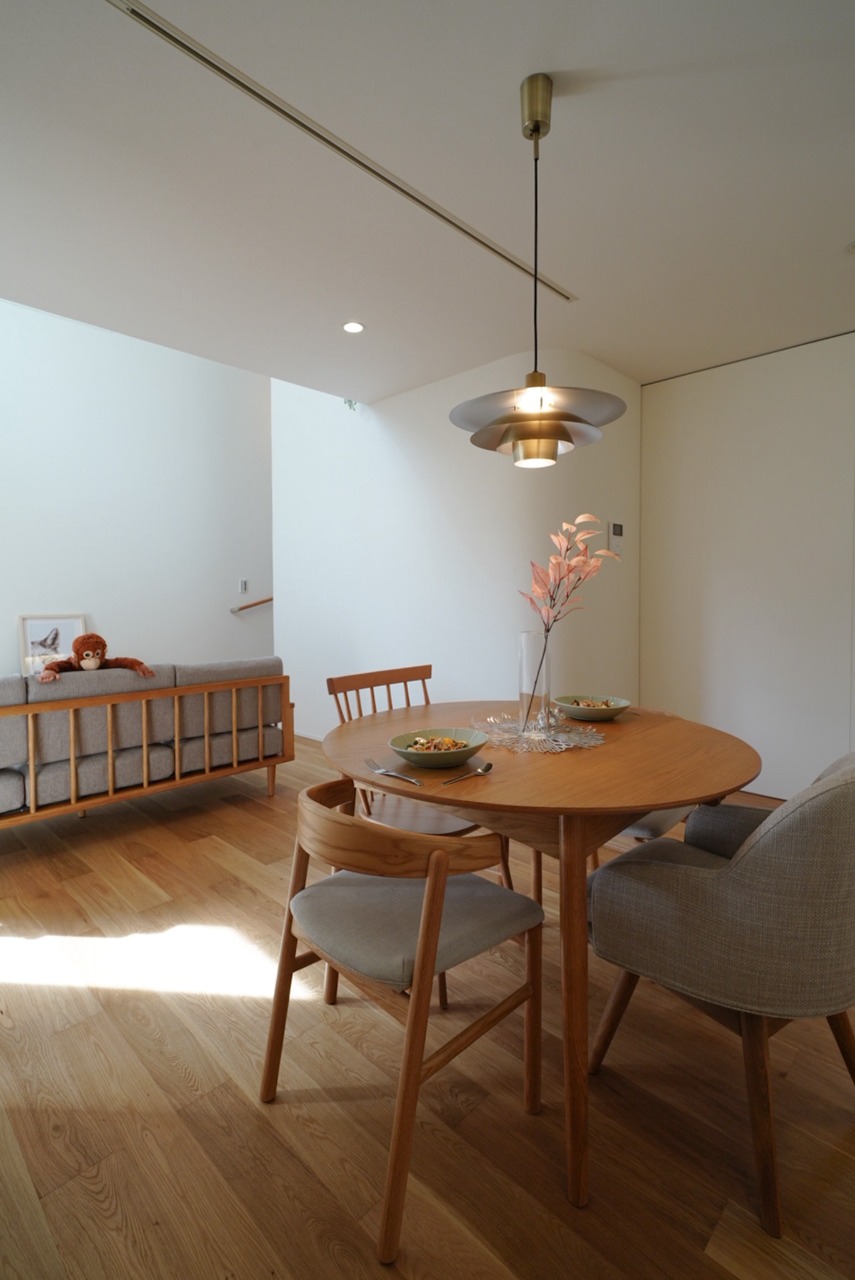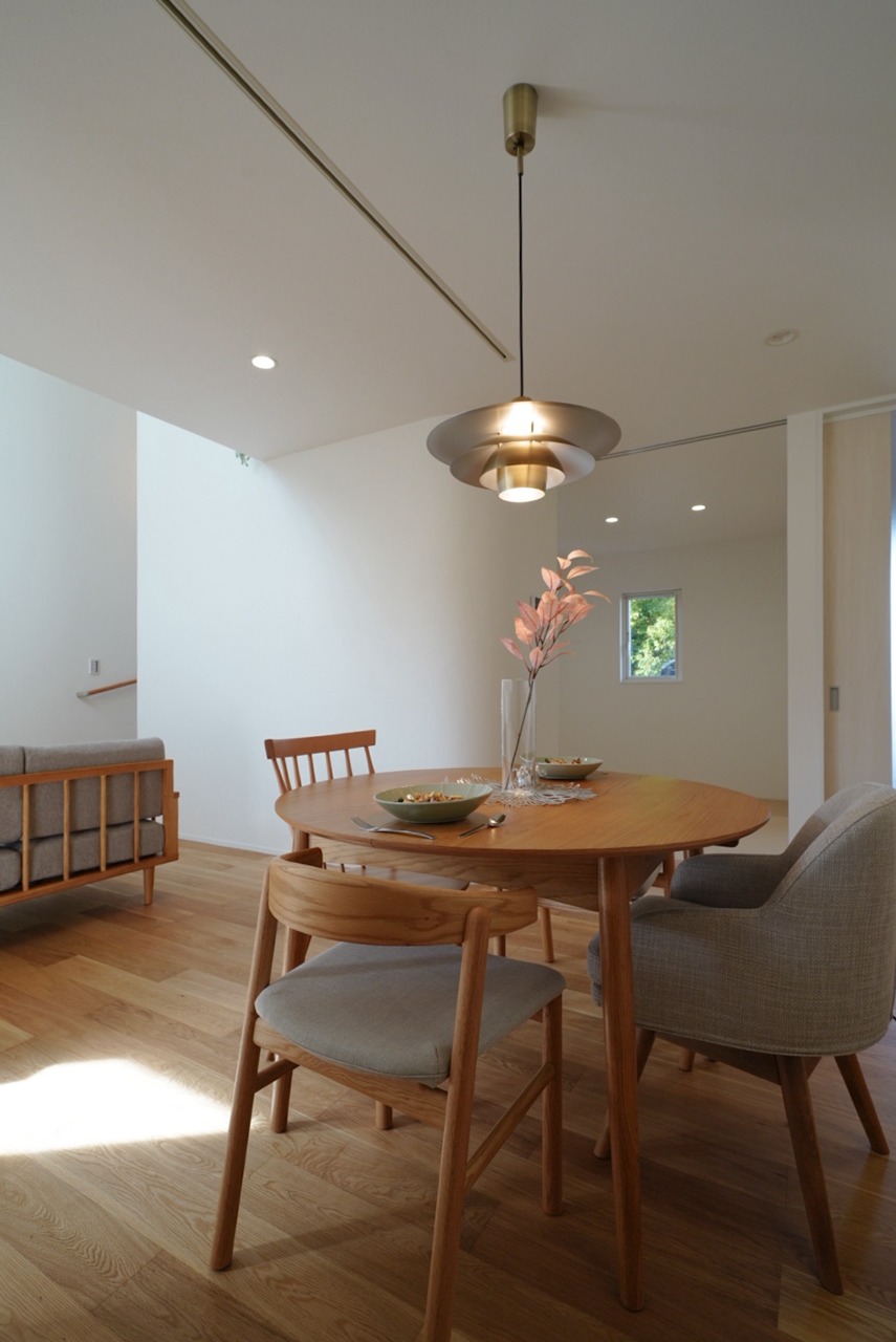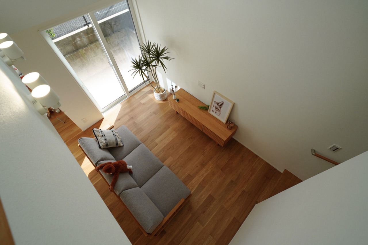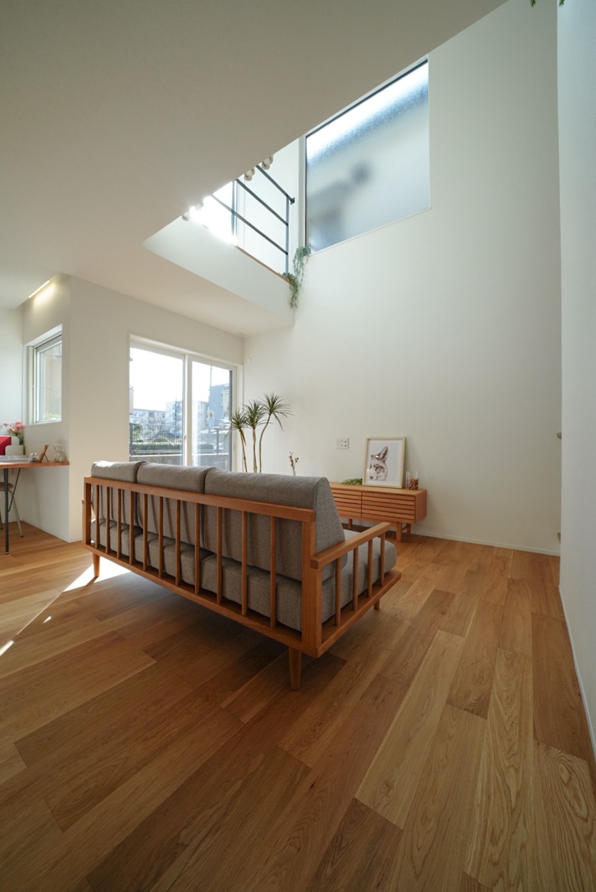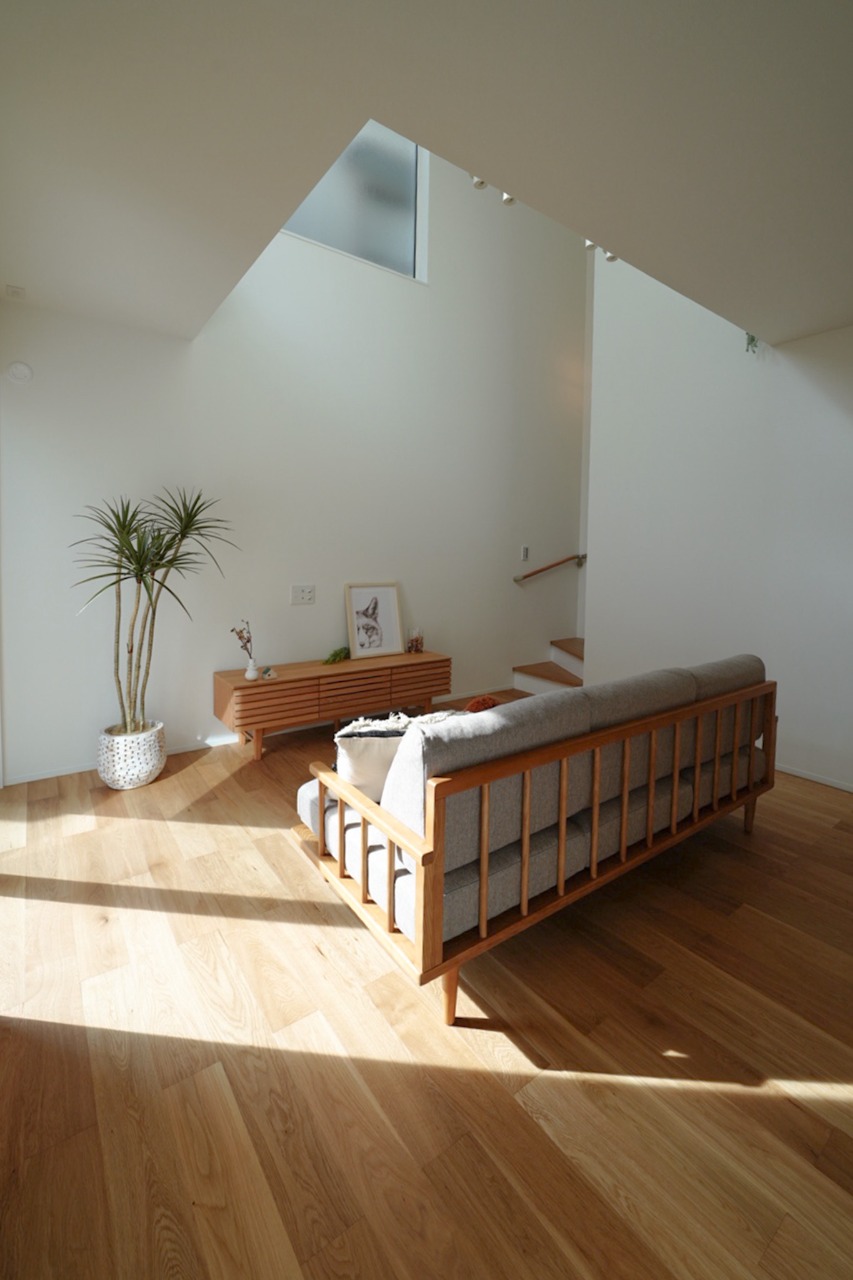 季節の移ろいや、家族の気配を感じられる吹き抜けリビング。日々のくらしを包み込む“空気”を感じさせてくれる家。