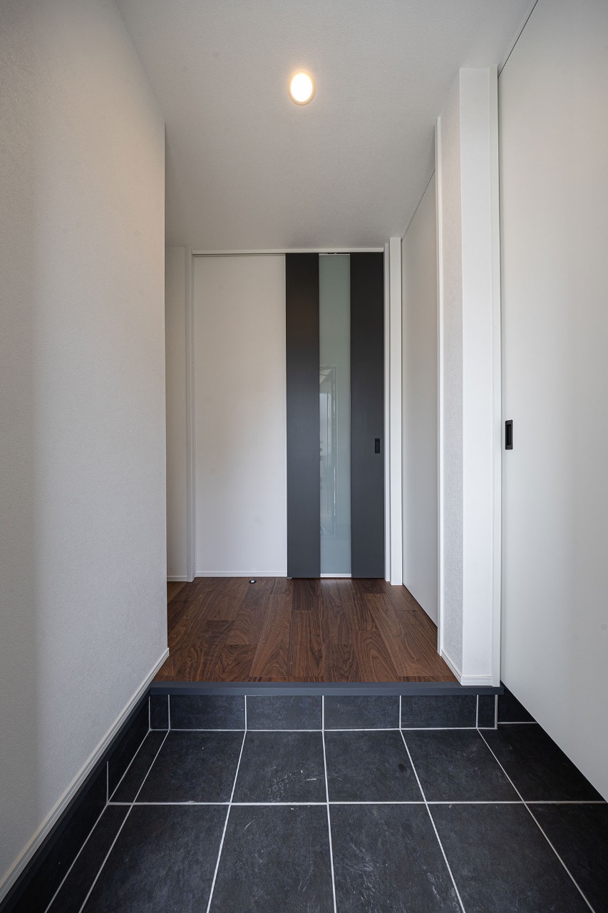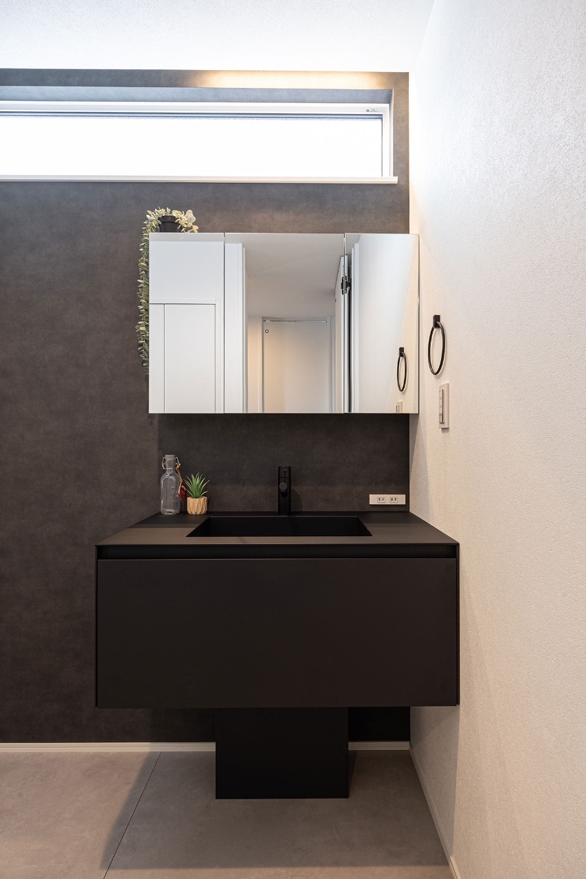 外観・内観・インテリアに黒がアクセントカラーとして配された都会的な家。
