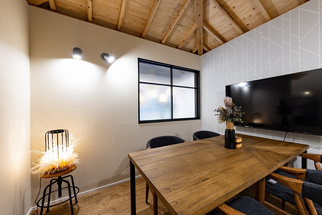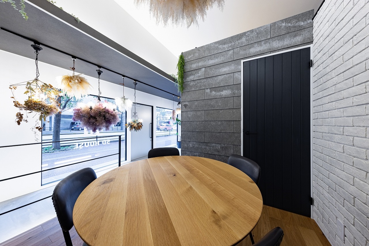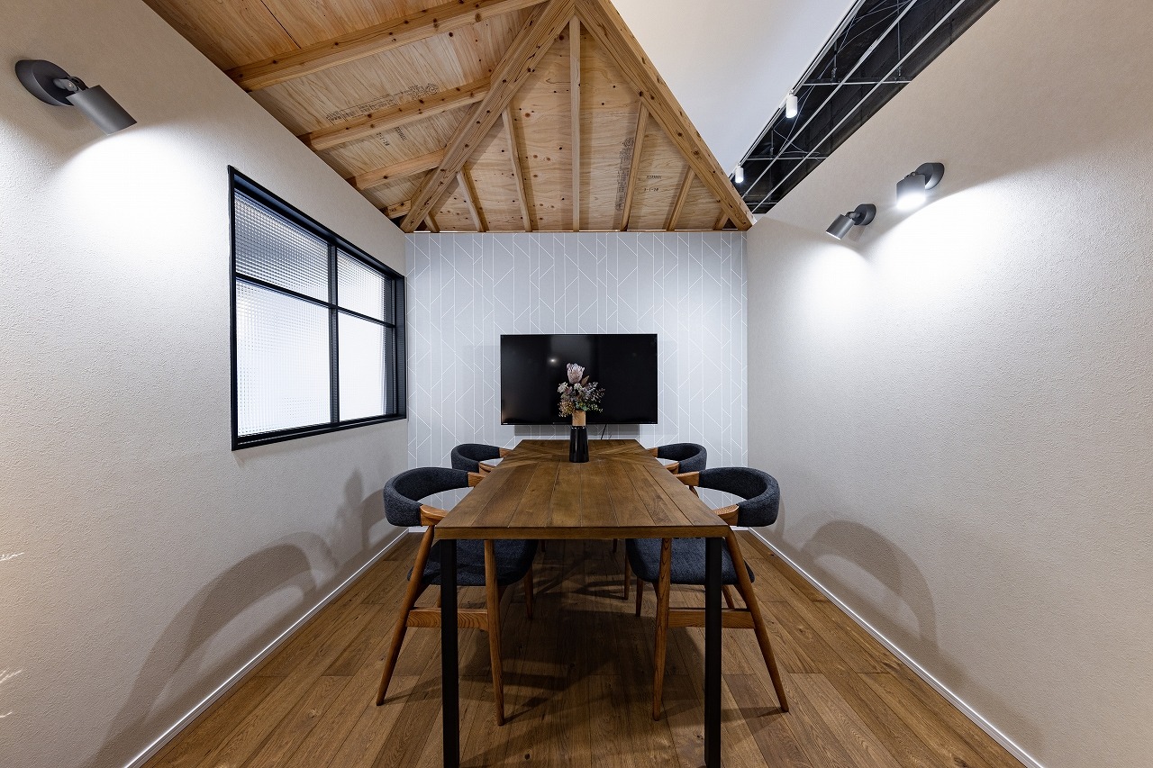 DIRECT ー演出するー 限られた空間での演出。狭い空間でも高さを活かし、間口を活かすことで広く見える。限られた空間でもおしゃれに。 アクセントをつけたり色の濃淡をもうけることにより、高級感も演出。 このショールームはあえて未完成の状態にしています。天井は軽天を見せたまま、事務所内は下地のまま。 だからこそ、これからまだ進化していくことができる。 これからもオールハウスと5D HOUSEが進化していく。 進化と成長、挑戦していきたいという想いを込めています。