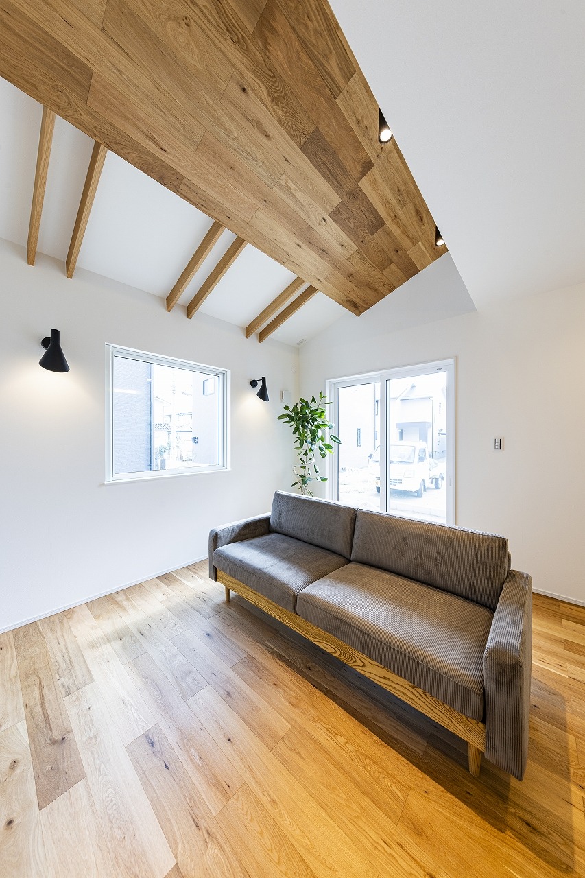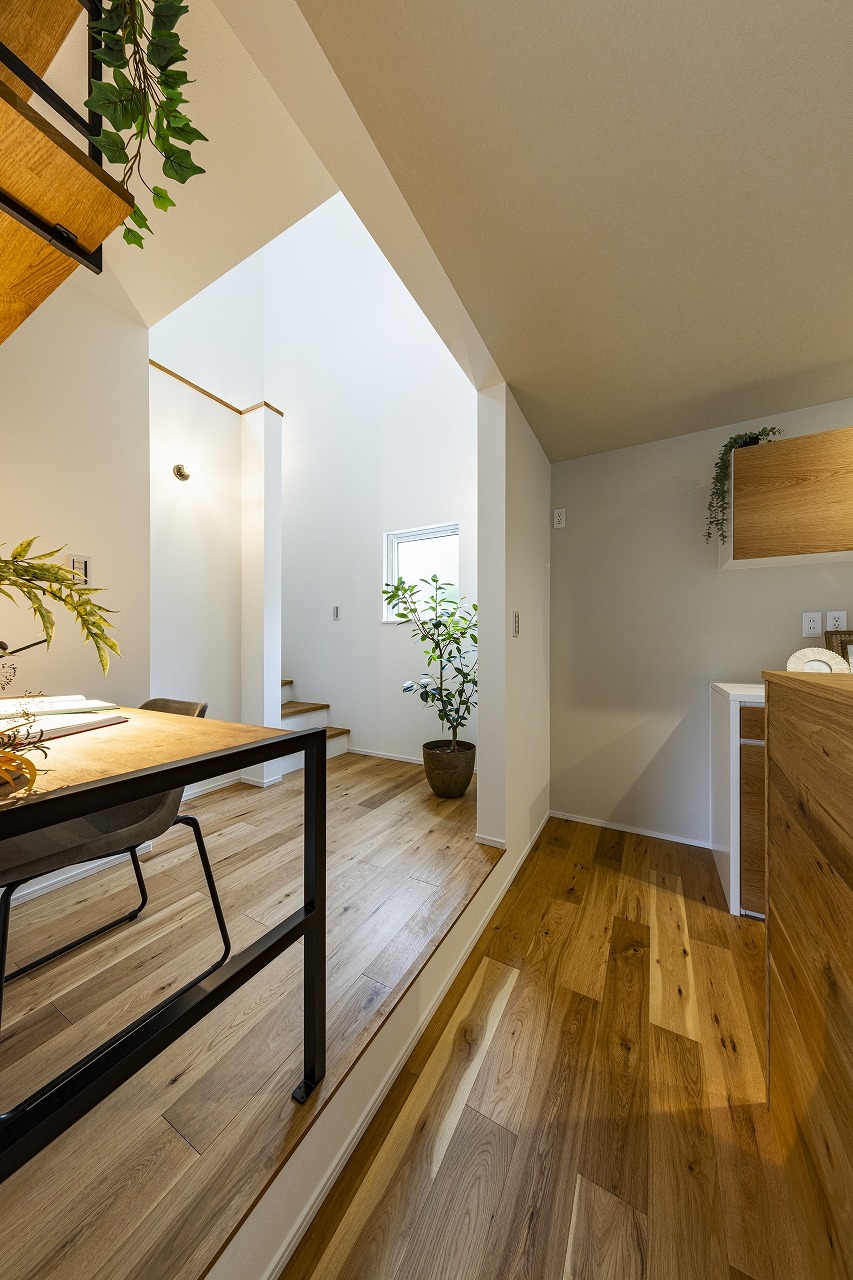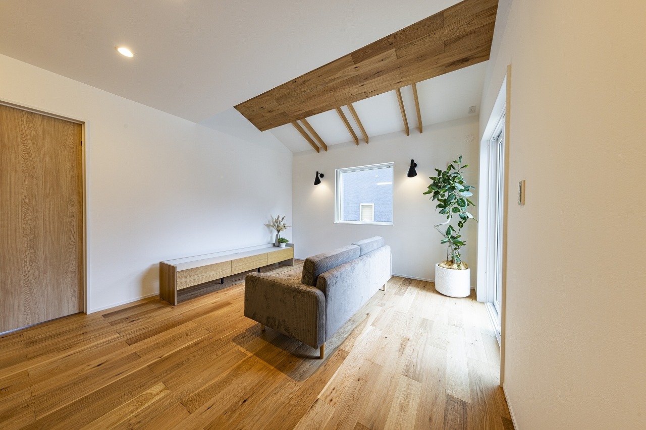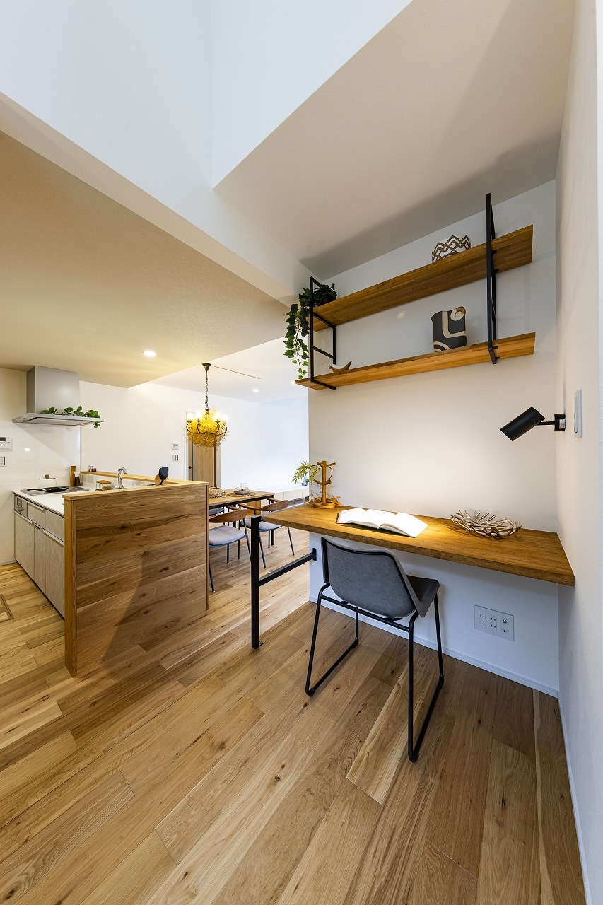 ソファ、ダイニングテーブル、ダイニングチェア、テレビボード、食器棚、フラワーシャンデリア付き キッチンから洗面に行けるので、料理や洗濯といった日々の家事がスムーズに 対面式キッチンでコミュニケーションの取りやすい空間になっています 食器棚が付いており、充実のキッチン収納です キッチン横のワークスペースはちょっとした作業に最適です 階段周りは暗くならないように窓を配置 明るく広々としたリビング空間 和室とリビングが繋がることで21.5帖の広々空間に 2階にある服の収納に便利なWIC キッチンから繋がる洗面所。ラクラク家事動線です 洗面所は何かと必要になる収納も完備、スペースも広々です のんびりと寛げる広々浴室スペース 温水洗浄便座付き、1階と2階にトイレがあります 玄関から繋がるSICは自転車を入れたりちょっとした物置にできる便利スペース 充実の収納空間 白い外観に木目調のおしゃれな組み合わせ 快適な暮らしを実現する標準仕様